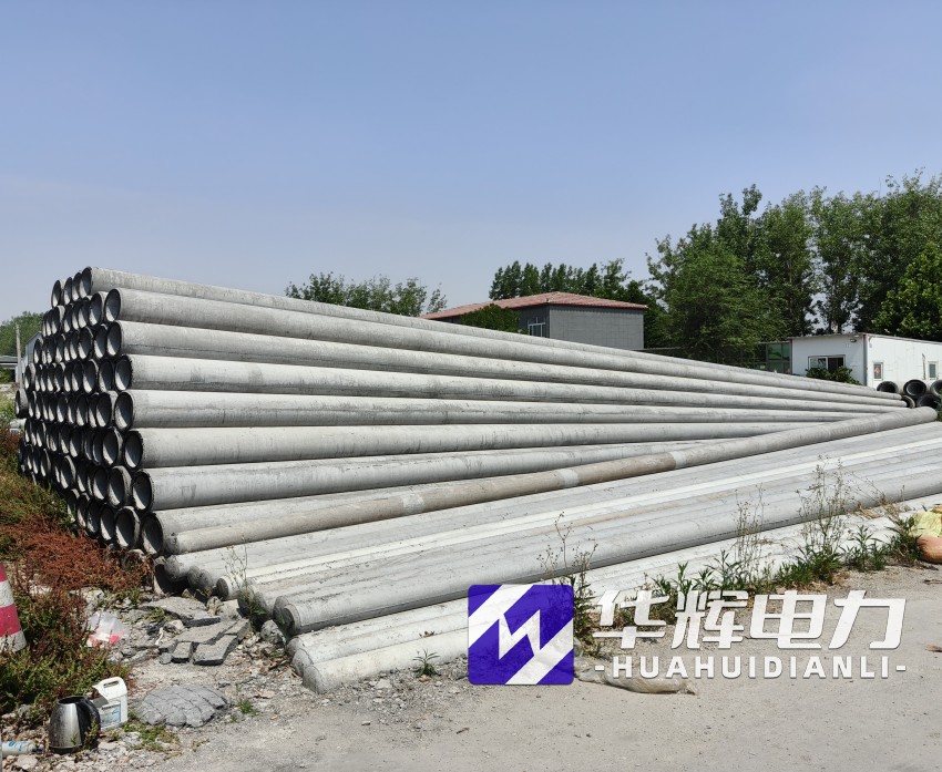 8米温县水泥电线杆通常采用钢筋混凝土离心成型工艺,杆体呈锥形结构,梢径150mm-190mm,根径230mm-270mm,壁厚40mm-50mm。根据标准GB/T4623-2014,产品混凝土强度等级不低于C40,主筋采用HRB400级钢筋,配筋量根据抗裂弯矩要求设计,标准抗裂弯矩可达12-18kN·m,破坏弯矩不小于24kN·m。杆体重量约0.5-0.8吨,运输安装便捷,适合人工或小型机械施工。